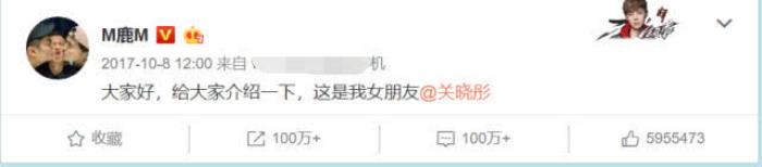2017年10月,鹿晗突然在微博公开与关晓彤的恋情,引爆微博服务器。