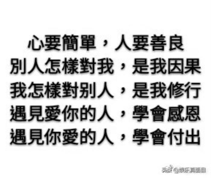 相比较文字,配图更是说明这条微博意有所指。配图中的文字内容为:心要简单,人要善良。除吃之外,还有别人对待自己、自己对待别人的阐释。