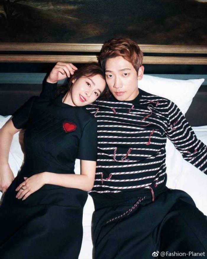 很喜欢的金泰熙和Rain,这张照片里的两个人都是穿着偏黑色系列的衣服,金泰熙整身黑色的裙子上有一颗红色的爱心,rain则选的黑白条纹的长袖和黑色牛仔裤。金泰熙把头靠着rain的肩膀上两人一起看镜头。据悉,金泰熙被称为“韩国第一美女”,自从嫁给了亚洲天王rain后,两个人十分低调恩爱,也一直深受韩国人的喜爱。