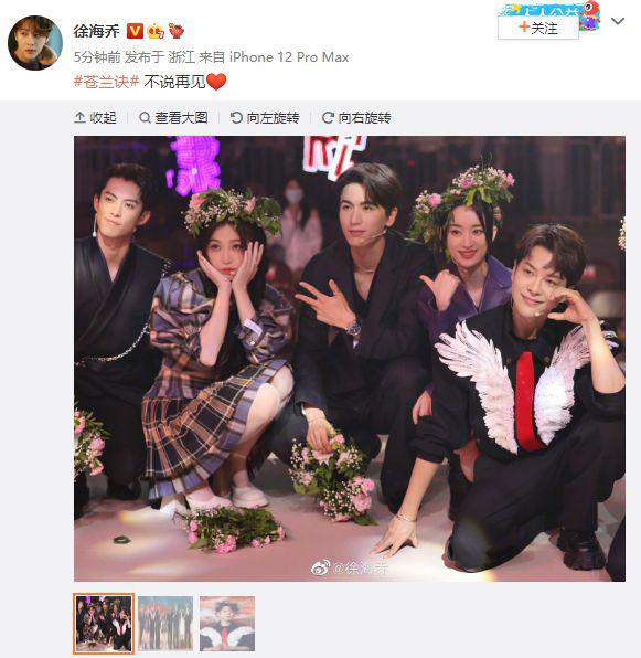 在《苍兰诀》剧中饰演荣昊仙君的徐海乔也分享了与主创们的合照,并配文:" 不说再见 "。