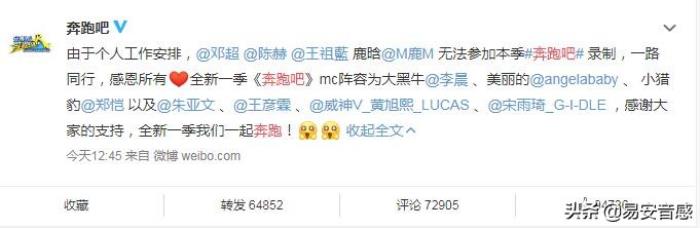值得庆幸的是,与跑男一直齐头并进的另一档节目《极限挑战》,虽然各个都是大咖,但至今仍未传出解散,还是很令人欣慰的。也希望这四位新人,能给跑男注入新鲜血液,使节目可以给观众耳目一新的感觉。