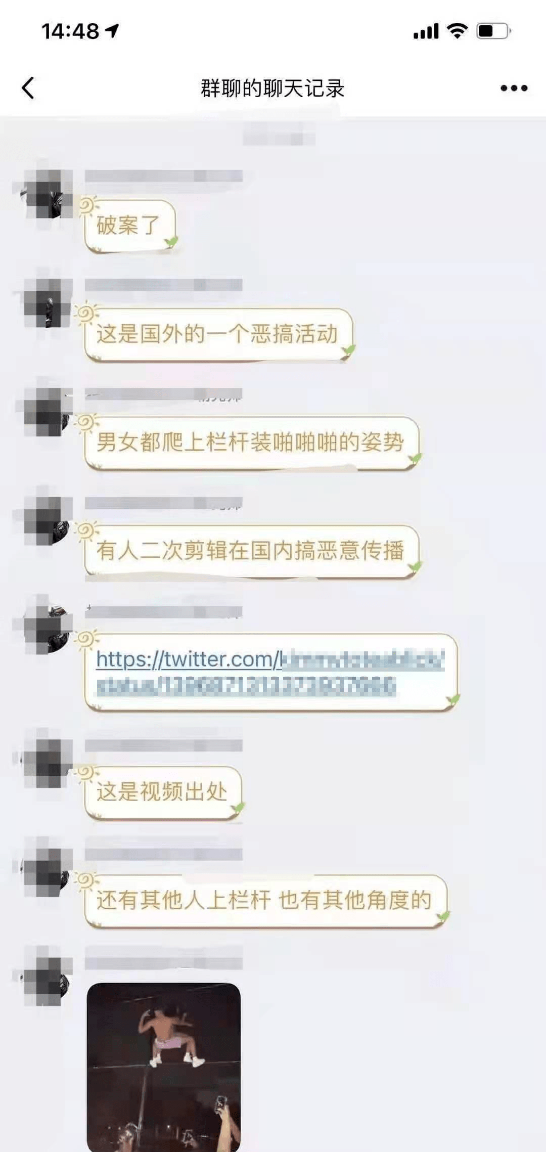 起先是,有人在聊天群分享了 “一对男女趴在护栏上演十八禁”的小视频。
