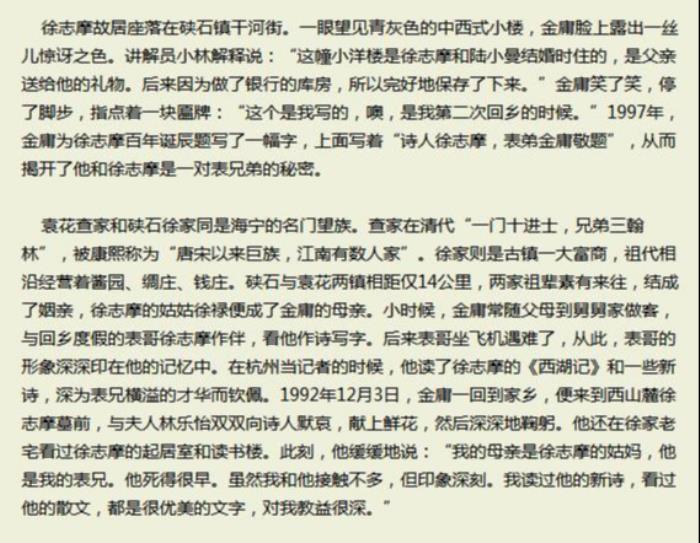 金庸和徐志摩(金庸不喜欢表哥徐志摩)