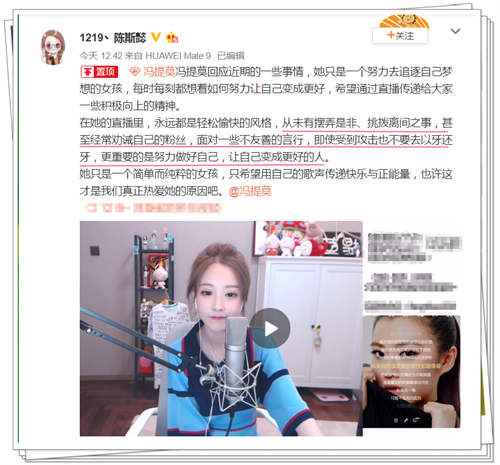 冯提莫在直播间强调,不论怎样让大家不要去骂人,去攻击别的主播。因为一个主播作为半个公众人物,自己的言行会影响到很多人,之前就有过一个当红主播因为行为不当,受到的惩罚是相当惨重。舆论的节奏是很可怕的,一七年末游戏主播之间的大戏,很多网友都亲眼目睹过,最后的结局也十分惨烈。有的主播因此而断送前程,活下来的主播也疲惫不堪,选择偏居一安。