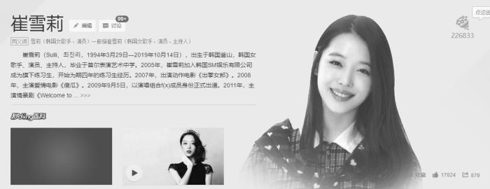 粉丝们对于这个殒命25岁花样年华的难过不已,就连她的百度百科也变成了灰色以示哀悼。
