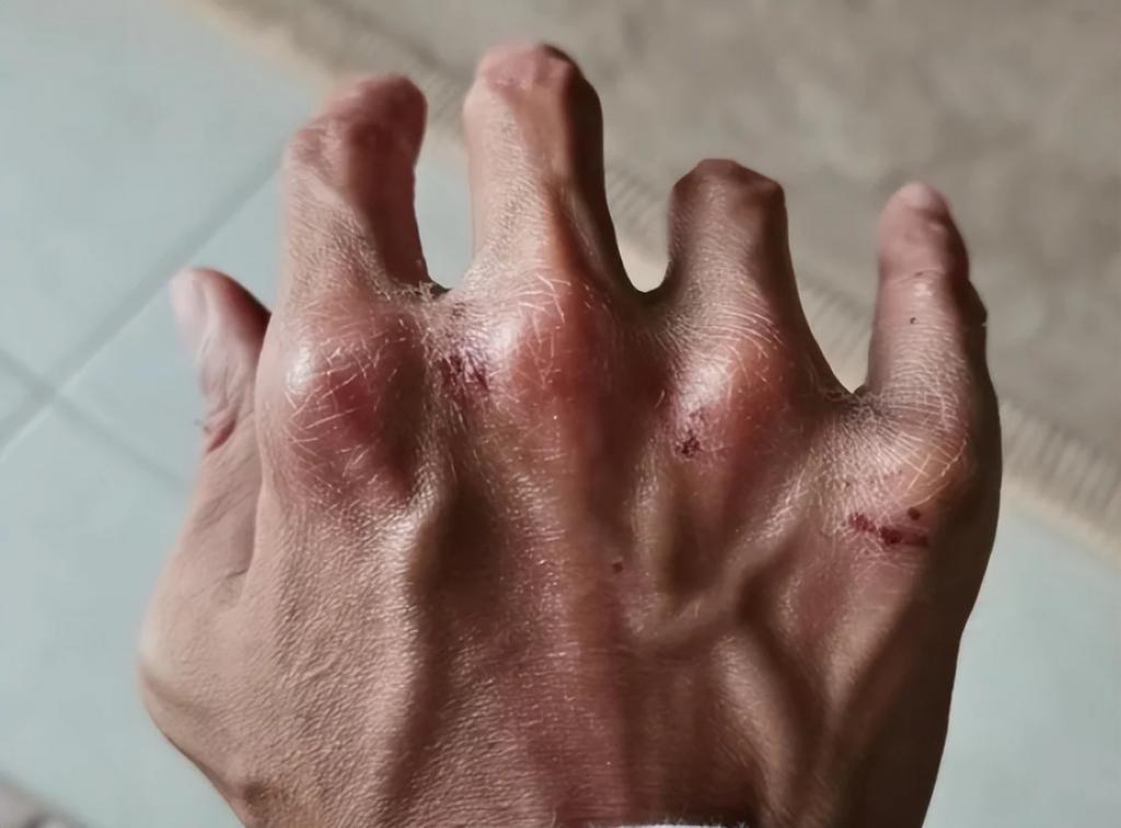 上个月,谢霆锋晒出过自己的手部特写照,他的手指关节红肿变形青筋明显,一看就知道是经常受伤导致的。
