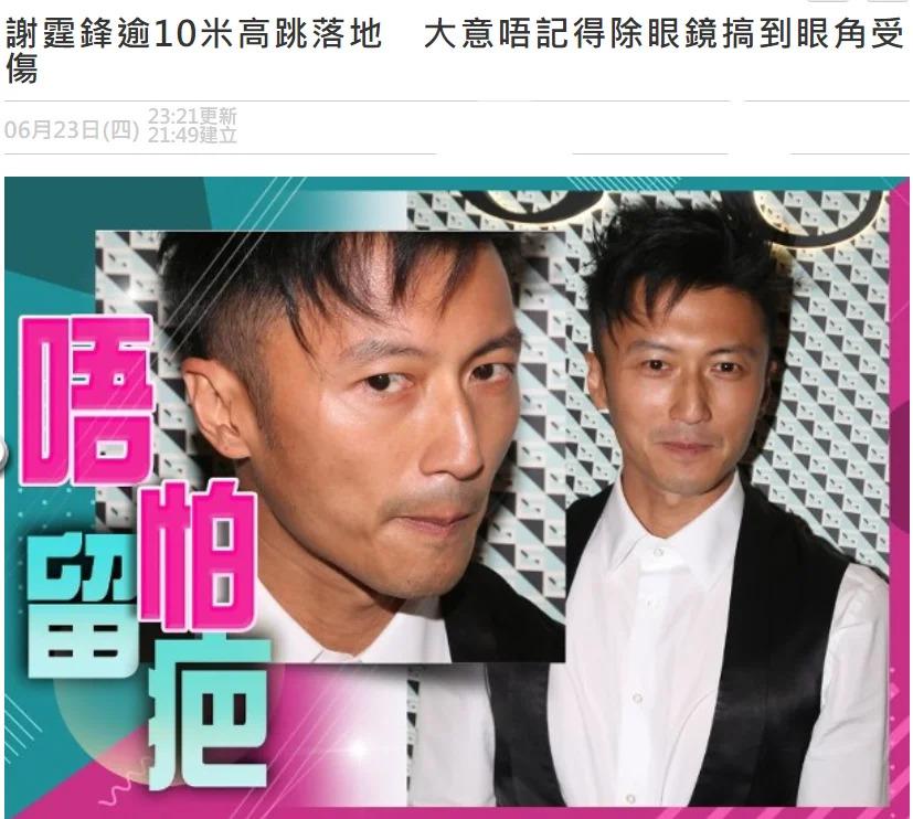 6 月 23 日,据港媒报道,谢霆锋自曝拍戏导致眼角受伤。消息一出,粉丝们担心不已。