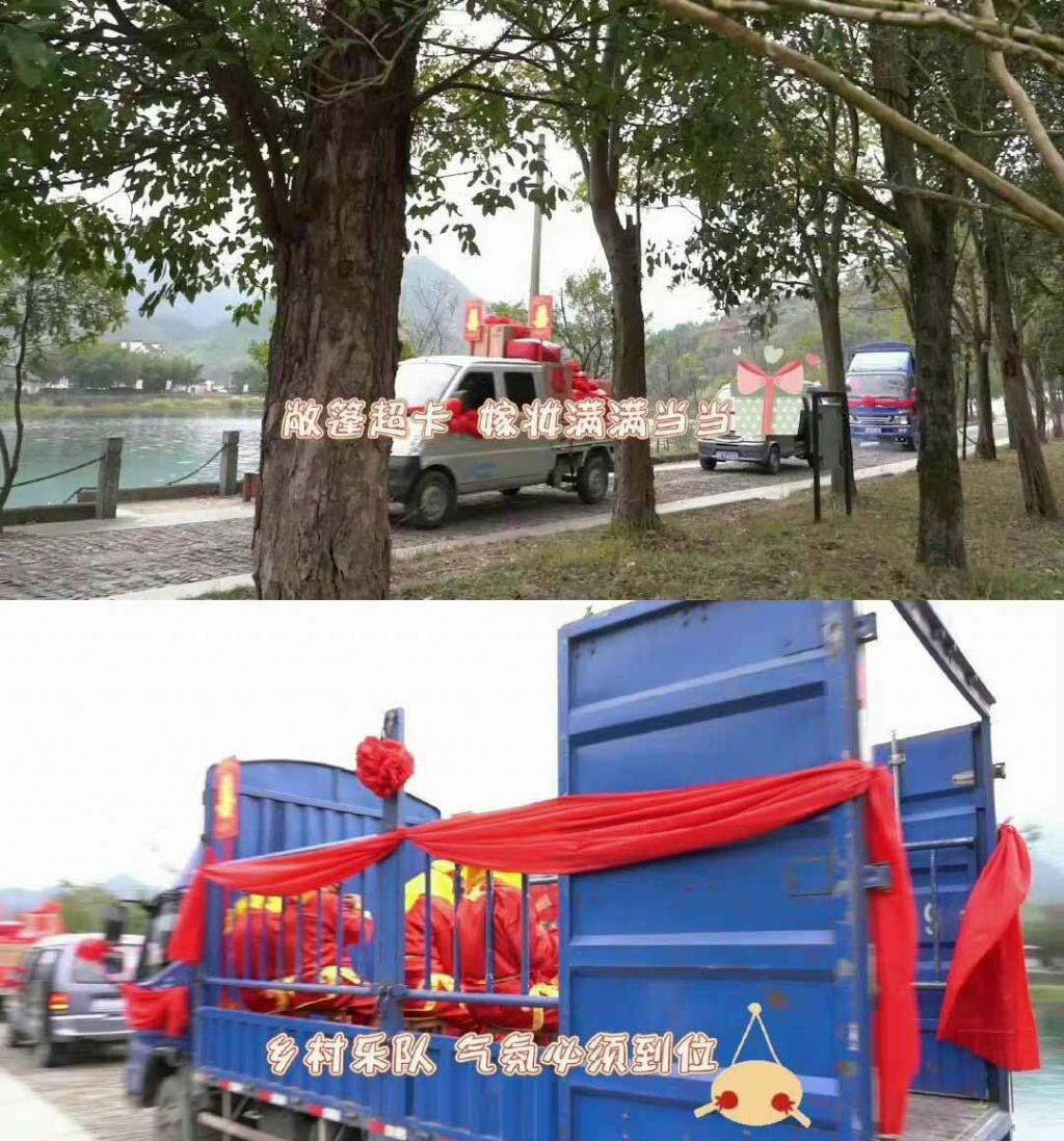 《幸福到万家》的导演也太会拍了,农村婚礼仿佛一比一还原的。用敞篷大卡车拉来满满当当的嫁妆,跟着车走的乡村乐队,敲锣打鼓,气氛一定要烘托到位。