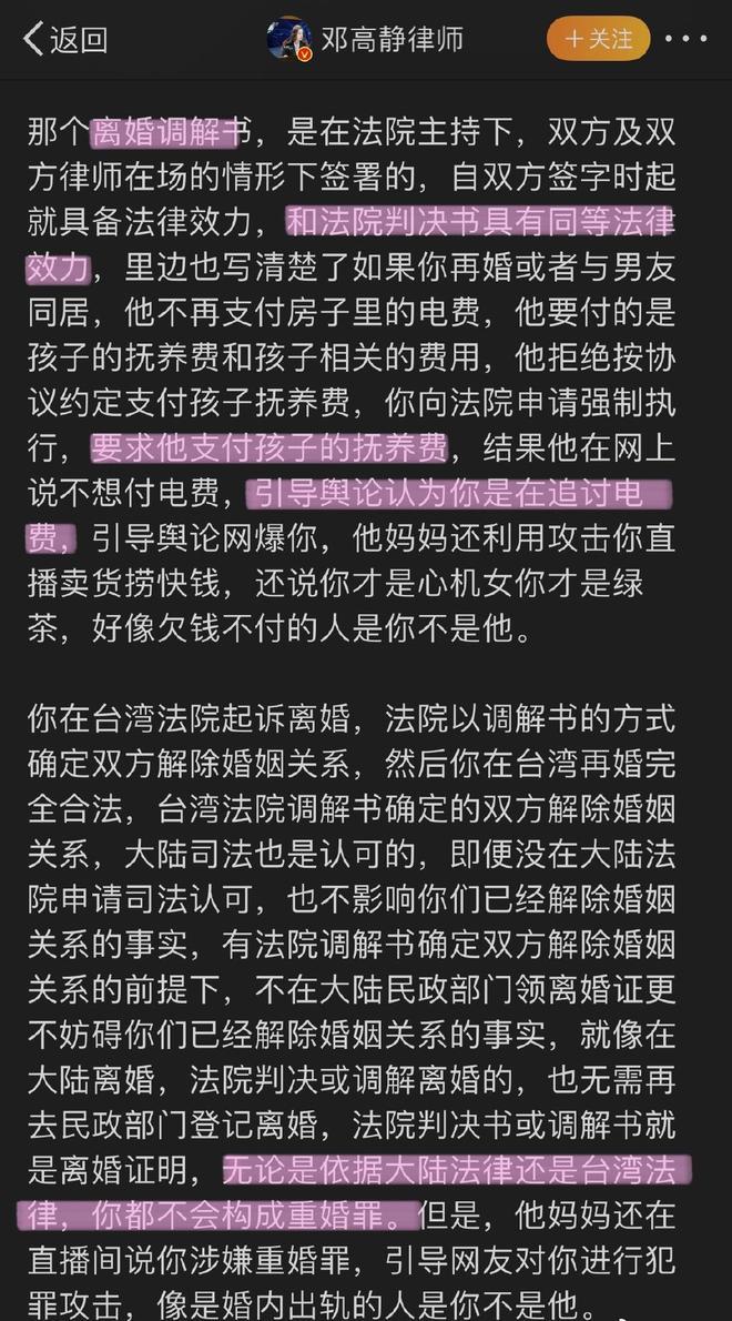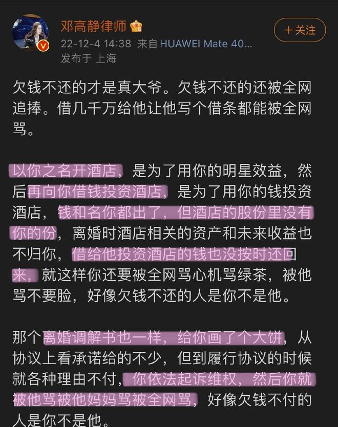 该律师发文称: