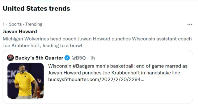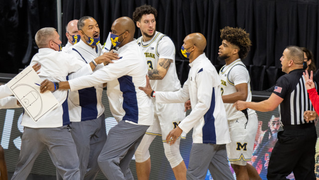 这不是霍华德自2019年接手密歇根大学后第一次和对方教练发生冲突。去年的Big Ten锦标赛上,霍华德也和马里兰大学的教练发生口角,当时他一度冲向对方,但被自己的助教拉住了。随后,霍华德被驱逐出场。