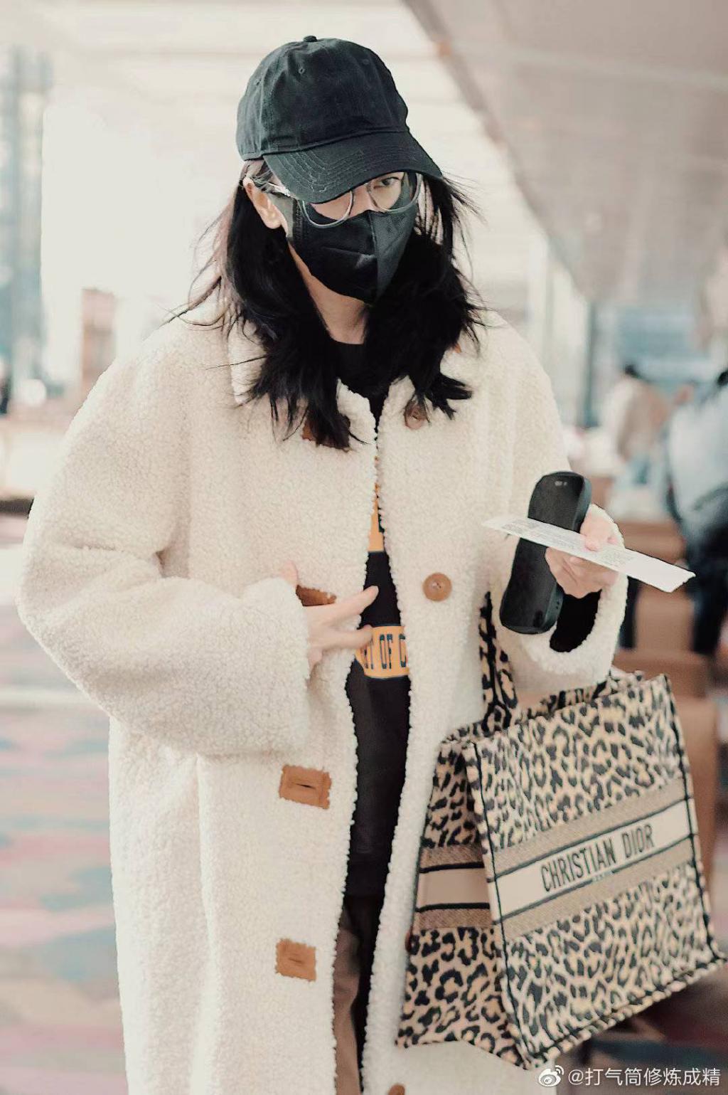 迪丽热巴机场饭拍图曝光!白色长款羔羊衣气质十足