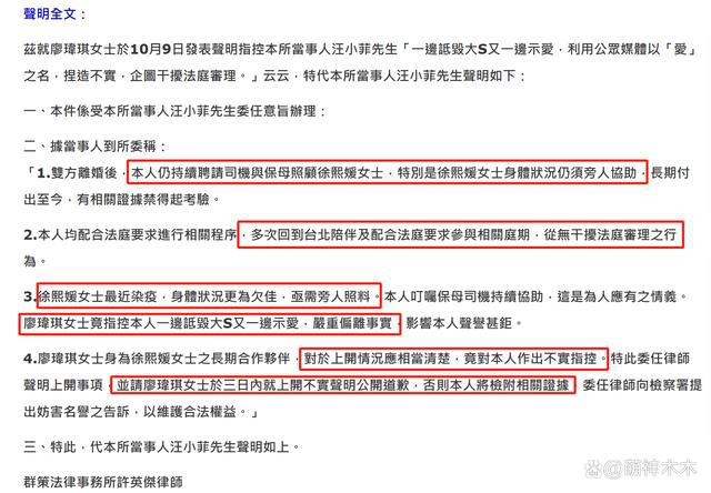 汪小菲这份声明其实还是值得一看的,他在律师声明里提到了 4 点,信息量还是不少。