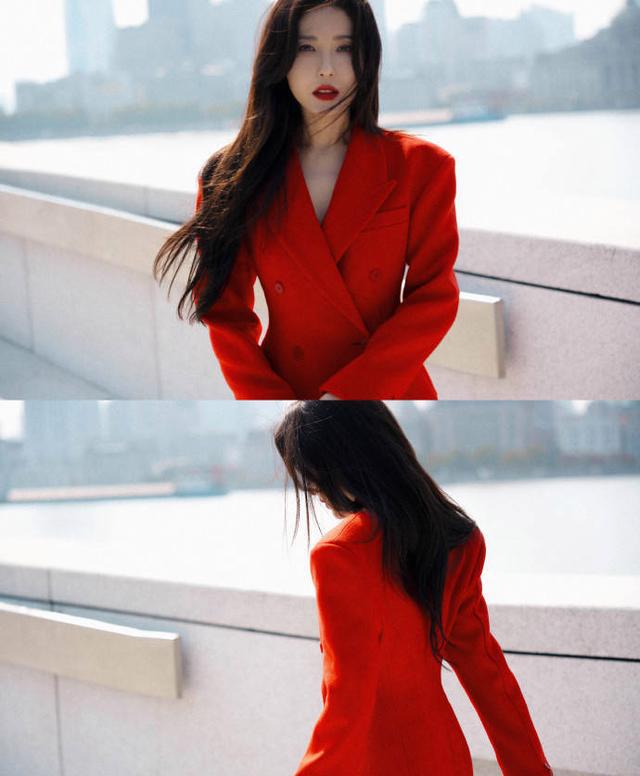 新浪娱乐讯 10 月 16 日,曾黎晒出一组室外美图。曾黎身穿红色西装裙漫步江边,红唇大波浪风情万种,微风拂发韵味十足。