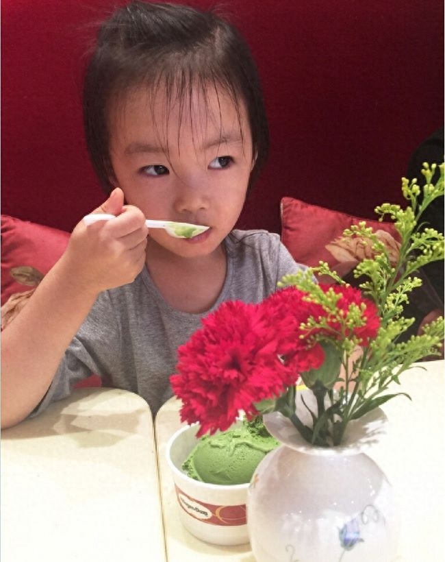 只不过相比于李小萌的双眼皮,女儿只是单眼皮,而且颜值似乎没有妈妈高。