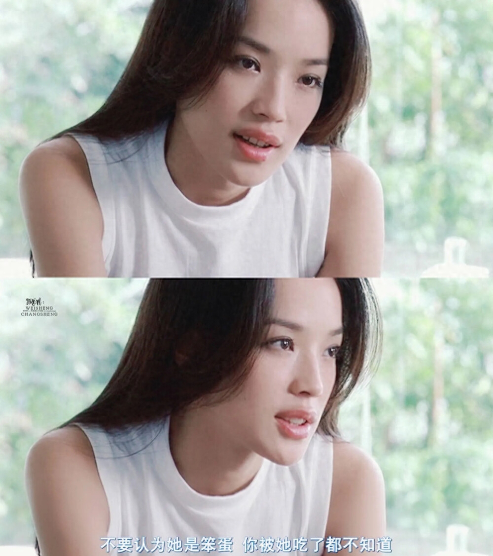 她的眼距宽,眼睛细长,下颚较宽,嘴唇厚且略大,面部留白很多,但是舒淇五官最大的特点就是厚嘴唇。嘴唇偏厚,唇部形状偏圆,唇峰不明显,所以才会有一种“勾人”的感觉: