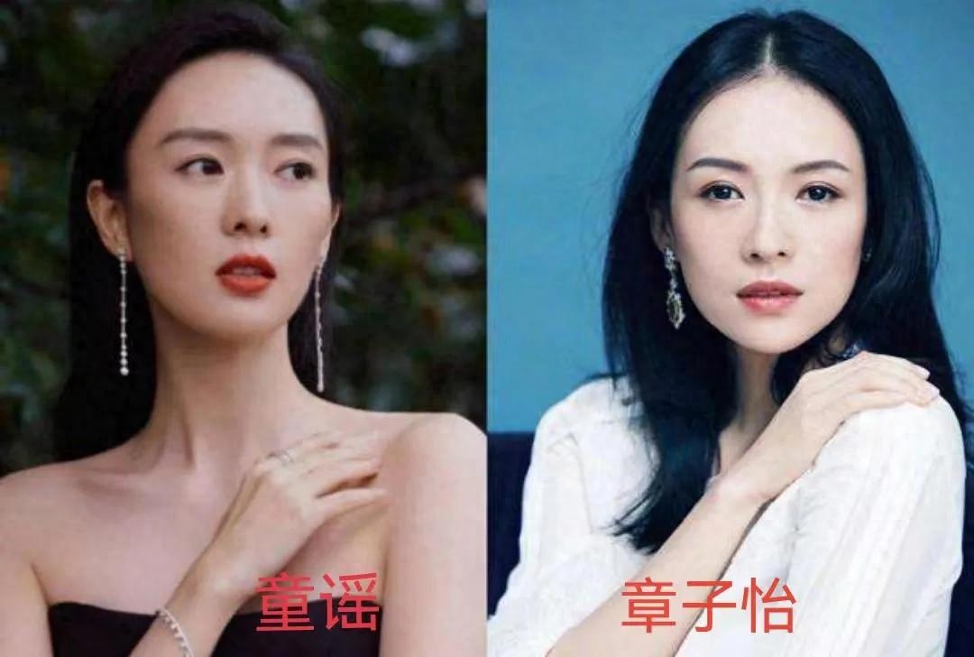 章子怡和童瑶二人的长相仔细一看还是可以区分出来的,但是就是神似,少说也有70%的相似度。而且二人扎起来麻花辫也是很相像。都是笑起来很好看,很清纯的类型。