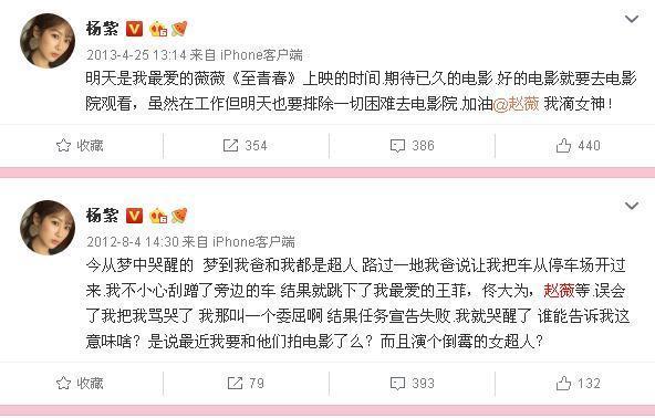 和赵薇合了影,她在微博狂喜地秀出来。