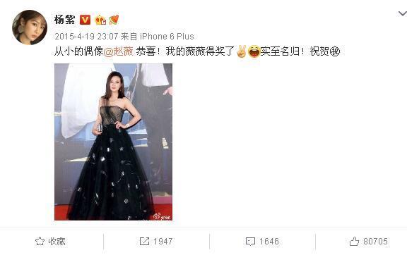 赵薇获奖,杨紫祝贺