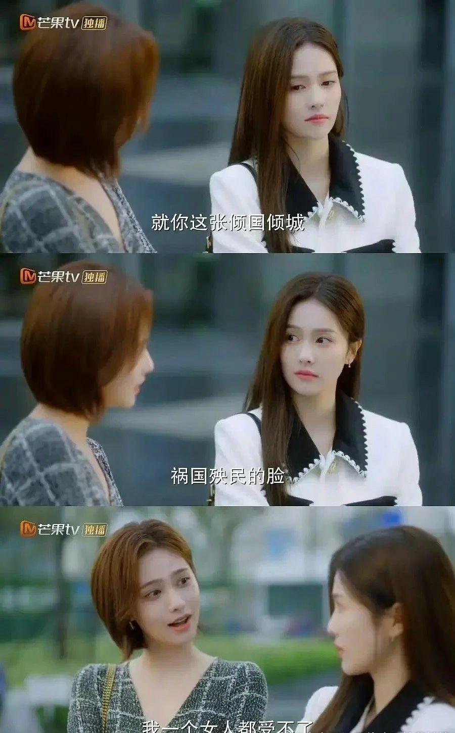 同样,前段时间的炸裂形容女主美貌台词也是出自该剧