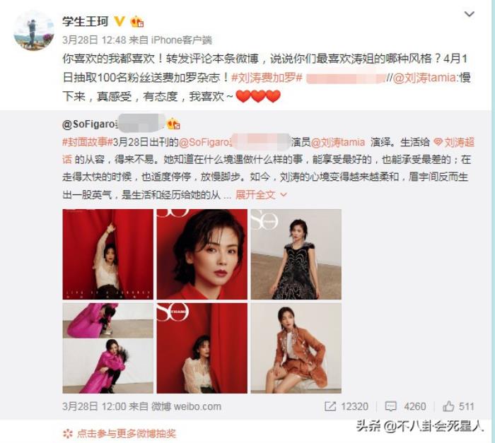 更神奇的时,王珂还会善用抽奖功能,以此来宣传刘涛拍的杂志美照。王珂还真是与时俱进的“死忠粉头”啊!