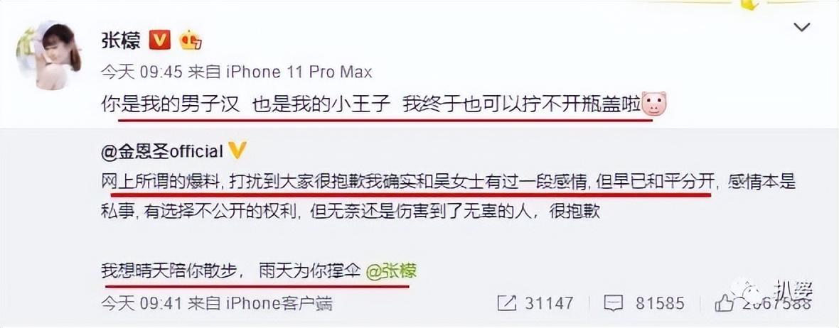 金恩圣和张檬高调秀恩爱官宣恋情的操作终于也能安全度过。