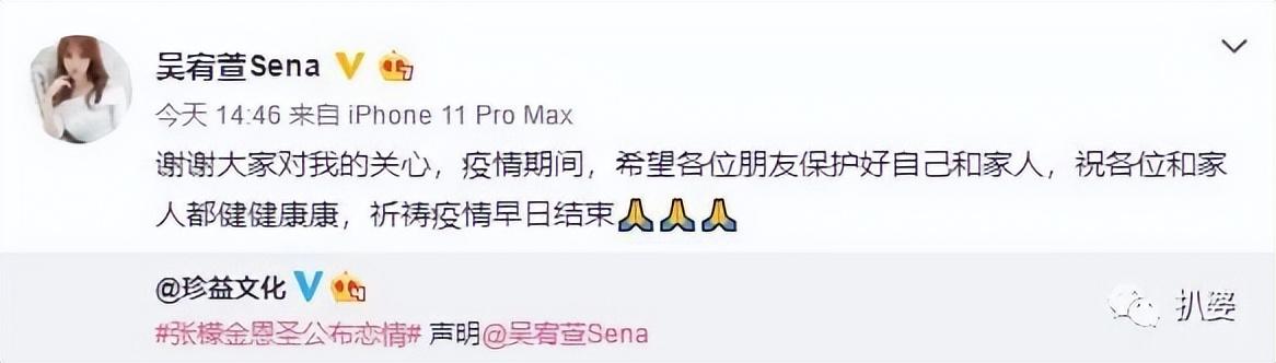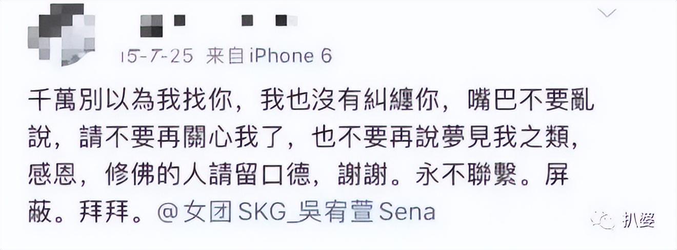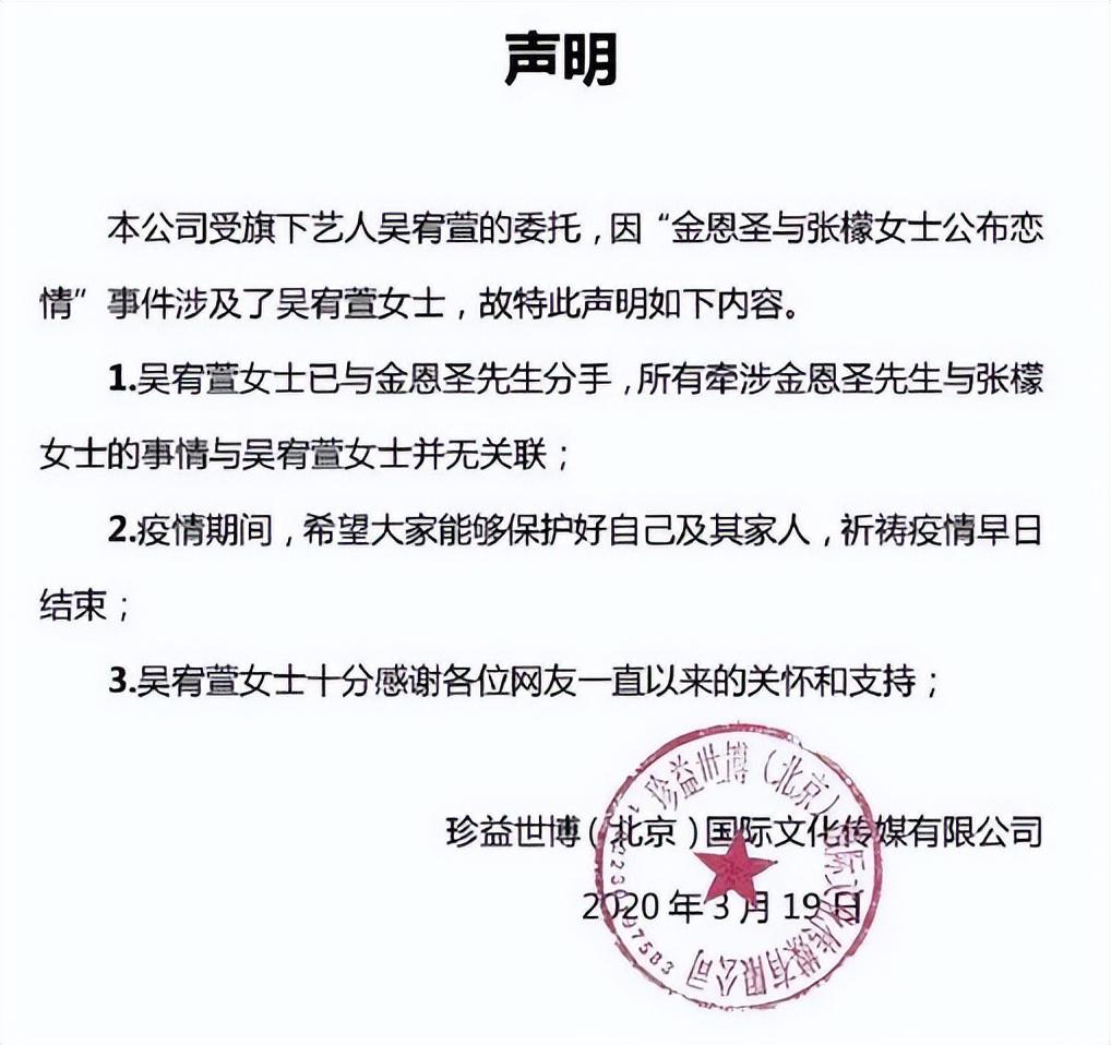 前女友吴宥萱发声明说自己没被背叛,早已分手。