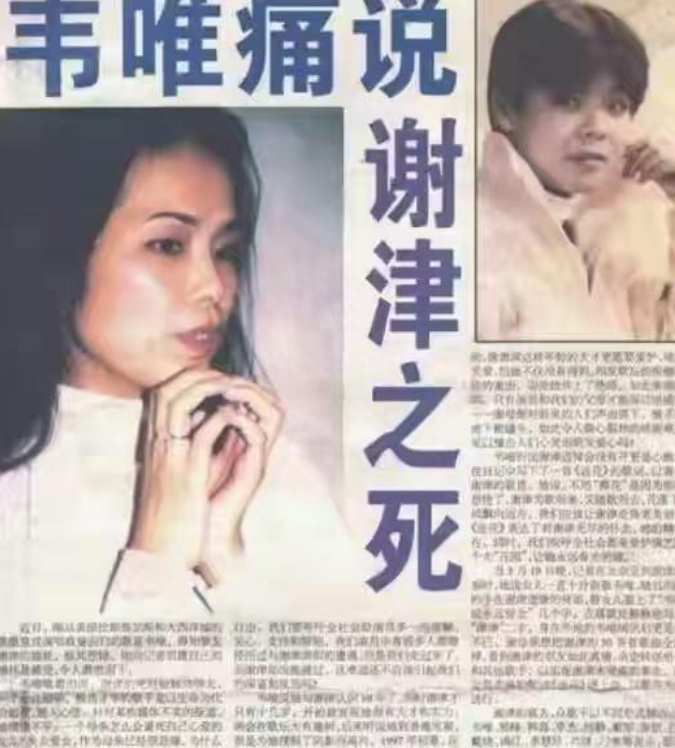 和谢津关系特别好的著名歌手韦唯,在知道她去世的消息之后一度忍不住留下了泪水,后来韦唯还特意写了一首歌用来纪念她,可以说,在韦唯的心里,好友的突然离世俨然成了她心里永远的痛。