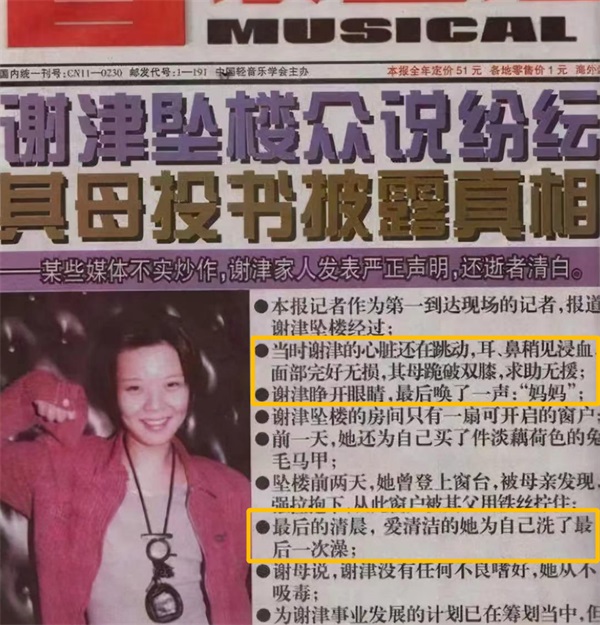 后来谢津的妈妈在回忆起这时候的她时还表示:“谢津心情压抑不是一天两天的事了,外人难以理解她的苦衷,这几年面临大大小小的压力,受到各种各样的困扰,孩子心里太委屈了。”