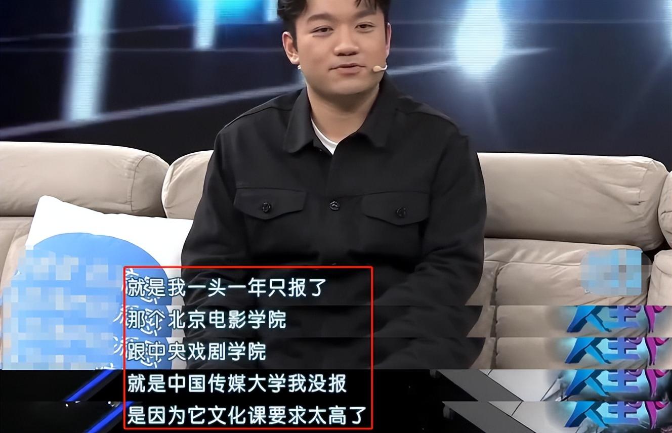 他说当时其实还报了中国传媒大学,但无奈这所学校对文化课的要求太高,以他的成绩绝对考不上,所以放弃了。