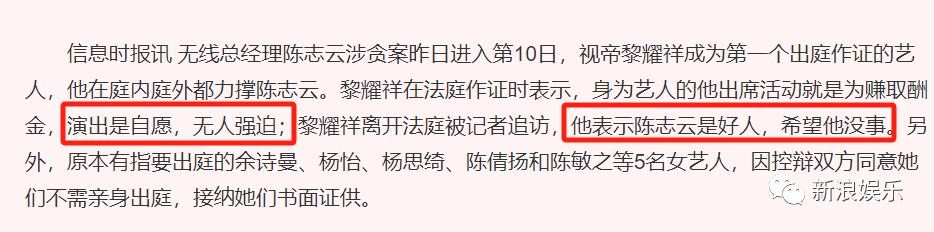 艺人们强调自己接工作无人强迫,因陈志云的关系收了友情价而已。