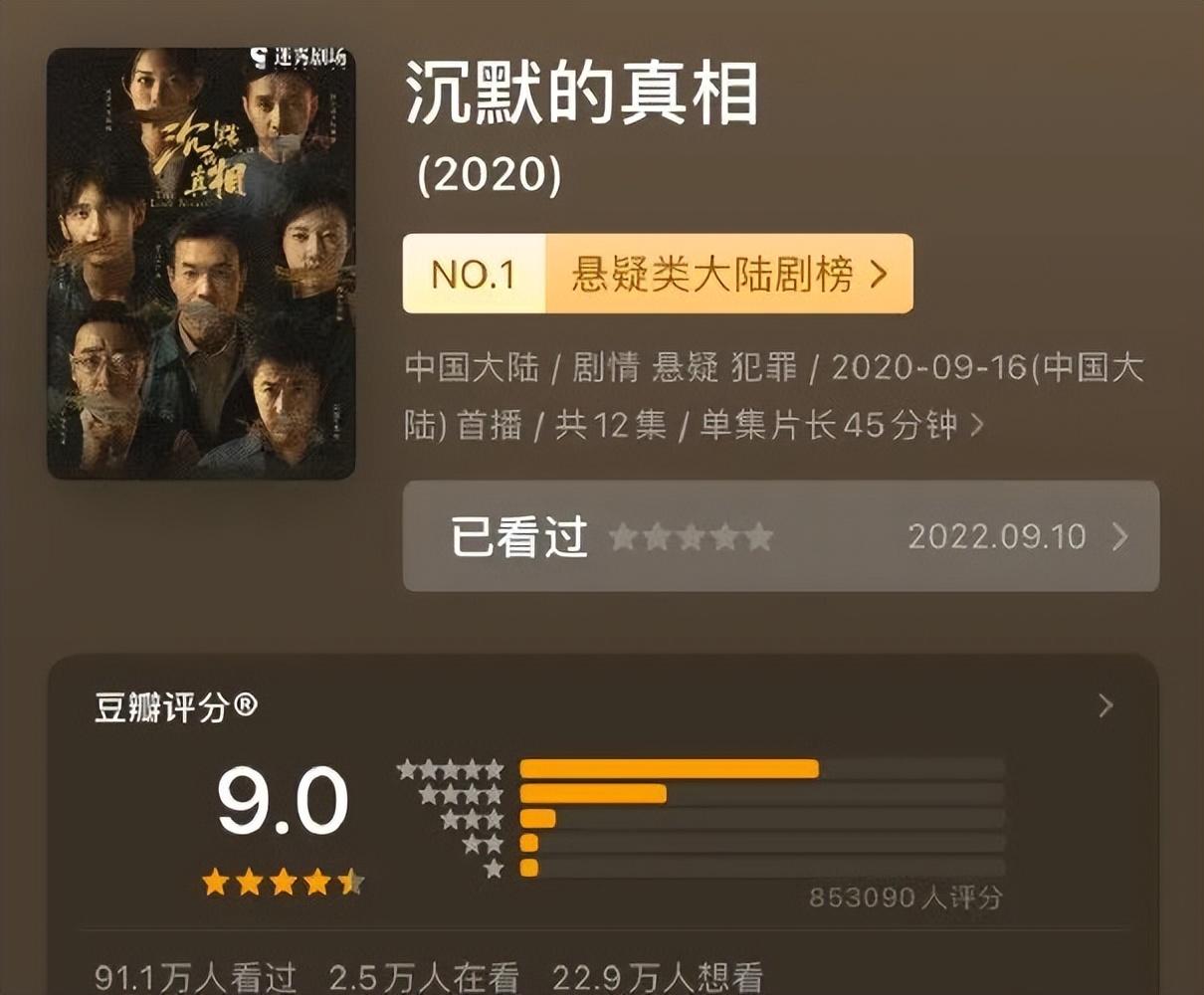 自走红后,白宇也就出了一部刑侦剧《沉默的真相》口碑不错,90万人打出了9.0的高分,但整体调性还是压抑。好在他的演技还够用,不至于被人吐槽。