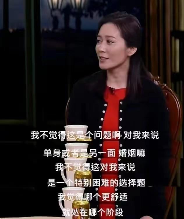 对于她来说,单身或婚姻,哪个状态更轻松更舒适,她就愿意待在哪个状态里。