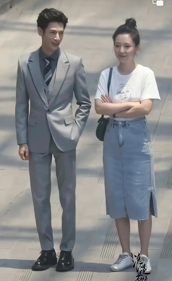 明明是将近一米八的身高,但是与一米六几的女星站在一起时,却看不出任何身高差。
