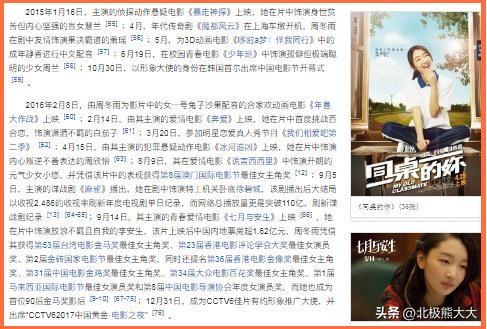 2015-2016年,周冬雨有十几部影视作品上映,反响都很不错。