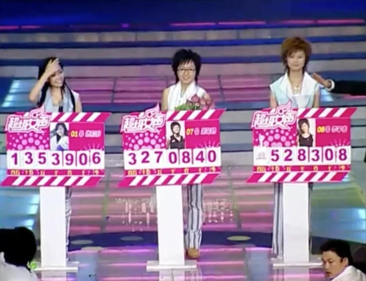 与获得352万票的李宇春,135万票的张靓颖,分列亚军、冠军、季军的位置。