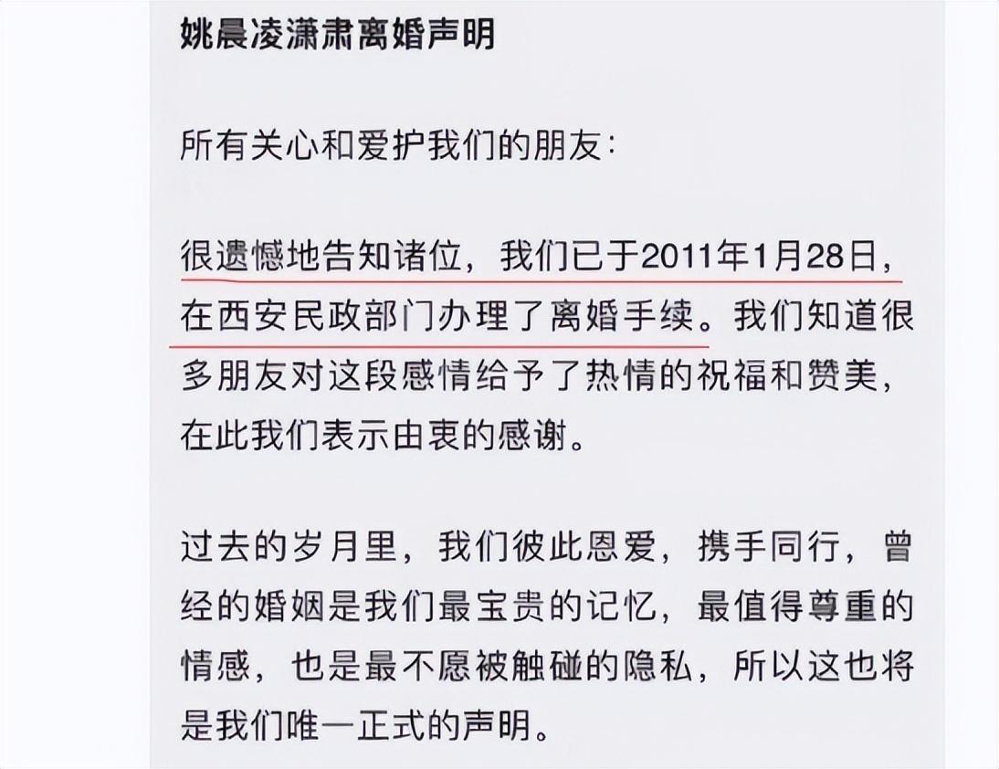 但此时的凌潇肃和姚晨都还没有离婚,虽然感情破裂,仍处于婚姻期间。