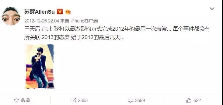 这条爆炸性的大瓜迅速在娱乐圈引起轩然大波,所有人的焦点纷纷从事件的男女主角转移到另一个当事人苏醒身上。而此时的苏醒在得知被“绿”后,又怎能咽下这口气,他随后在微博发了几条影射内容,之后又发了一条“三天后见”的微博,原来三天之后就是中歌榜,而中歌榜这次同时邀请了苏醒与李炜,所有人都预感将有事发生,但所有人都低估了事态的严重性。