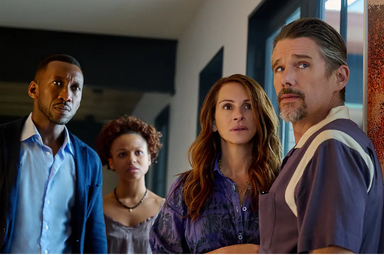 在这部奈飞出品的末世惊悚片里,阿曼达和丈夫克莱与孩子们阿奇和罗丝租住了一栋豪华别墅共度周末。