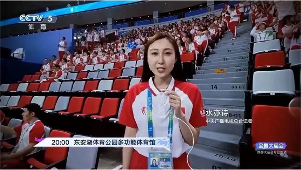 水亦诗进入央视,成都大运会出镜报道,29岁肤白高挑像爸爸水均益