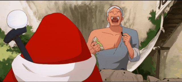 大谷子为了能让馒头吃饱穿暖,跑到戏鼓船上找夜翎缎,结果被隐蛟寄生,逐渐变成怪物。