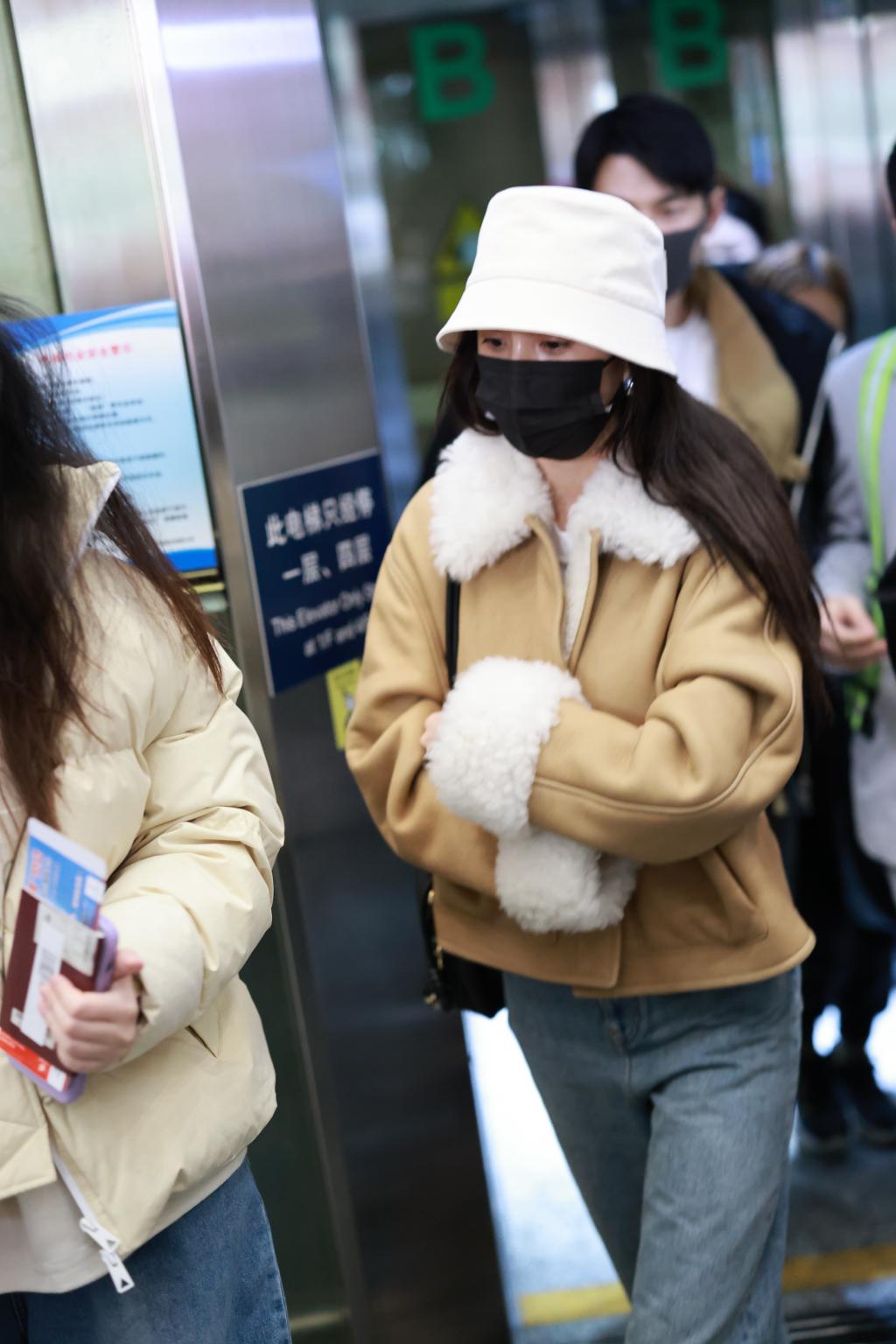 杨幂现身机场飞往巴黎看秀 羊羔绒外套温暖甜美