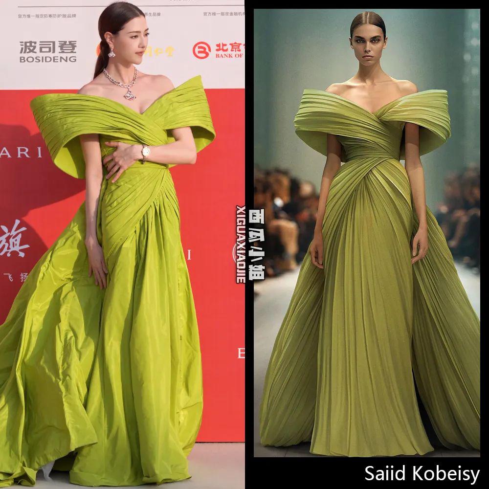 青草绿一直是红毯大招。异域风情的深邃五官,大胆张扬的色彩,是草长莺飞的野心,一碧千里,绝不暗淡。