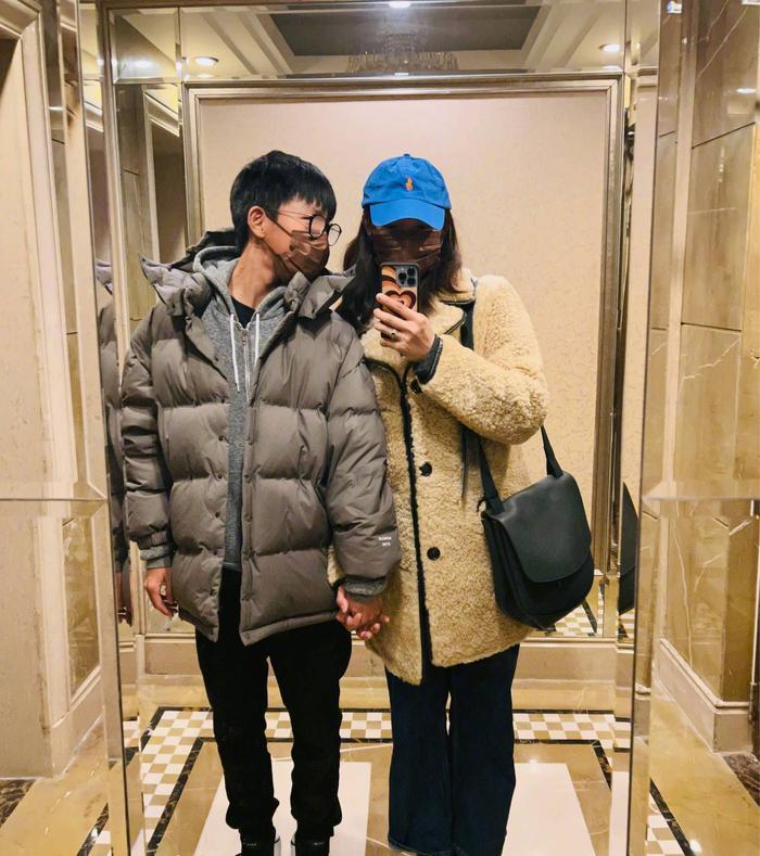 因为身高已经隐约超过了白百何的儿子,看起来和大人并没有多大区别。两人都带着口罩,看不清楚彼此的面容。