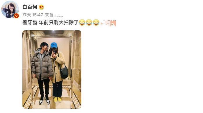 白百何在晒出合照之后,并配文:“看牙齿,年前只剩大扫除了”。