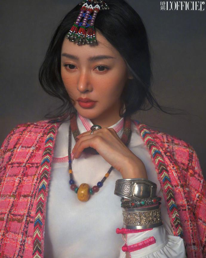 33岁张天爱登《时装》封面,穿民族风大秀珠光藏影