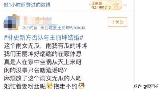 这不,王丽坤疑似手滑——点赞了,林更新方否认婚讯的微博。