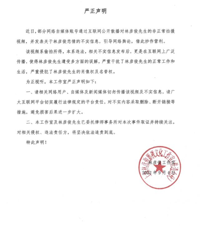 很快,林彦俊工作室就发出声明回应绯闻,言辞十分激烈地表示内容不实,并斥责传闻对林彦俊工作和生活造成影响,但是全文并未正面回应绯闻的内容,也并未提及被曝光的女子与林彦俊的关系。