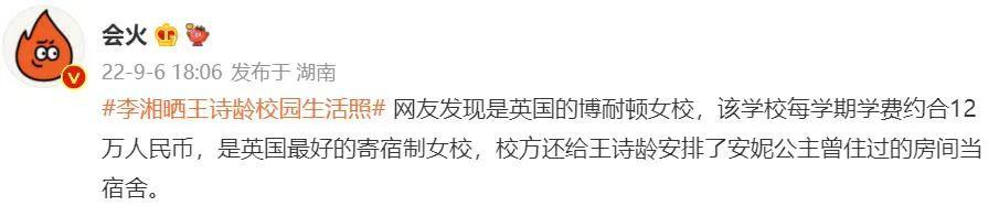 这次是王诗龄去英国读书了,文案上还写着: