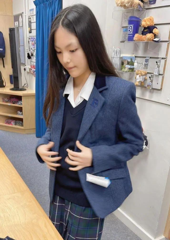 除了学校风光,李湘还晒了王诗龄试穿英国校服的照片,
