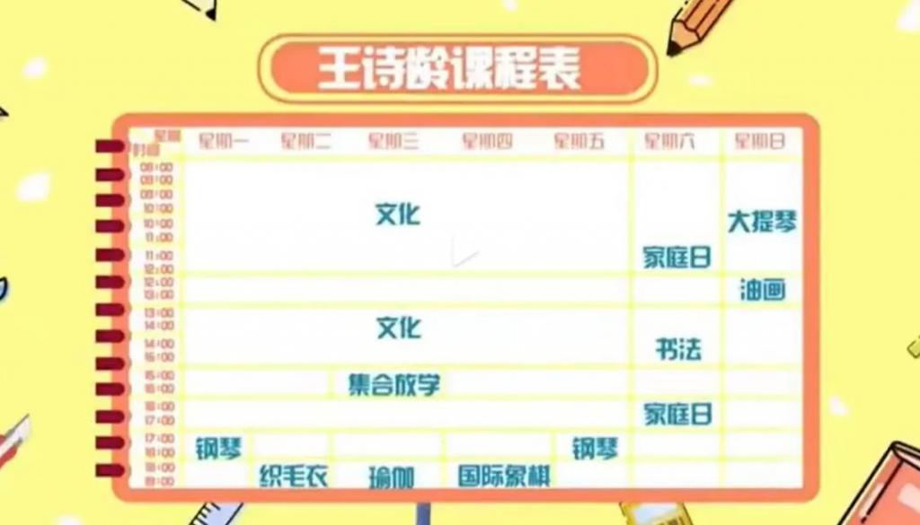 李湘曾在节目里分享过王诗龄的课程表,真可谓琴棋书画样样精通了。